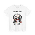 En unisex-T skjorte i kraftig bomull med teksten «Let me out of the crazy house».