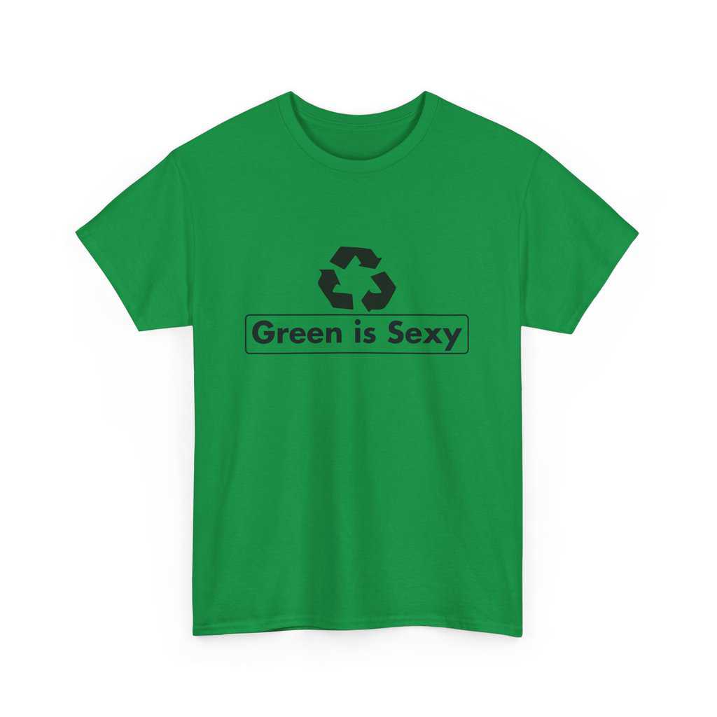 En miljøvennlig t-skjorte med teksten «Green is sexy».