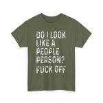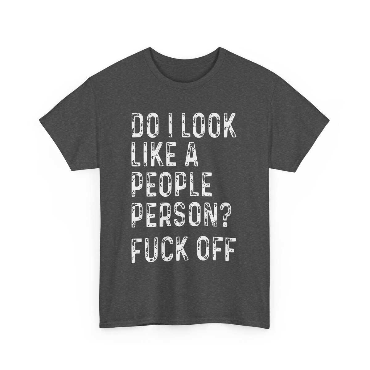 En støtende t-skjorte som frimodig sier «Do I look like a people person? Fuck off».